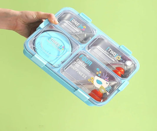 Time To Eat 2 Layer Stainless Steel Lunch Box|3 Compartments Bento Box with Spoon/Bowl