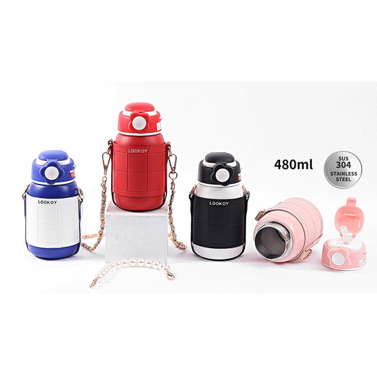 Premium Insulated Steel Bottle with Pearl & Metal Sling Chain