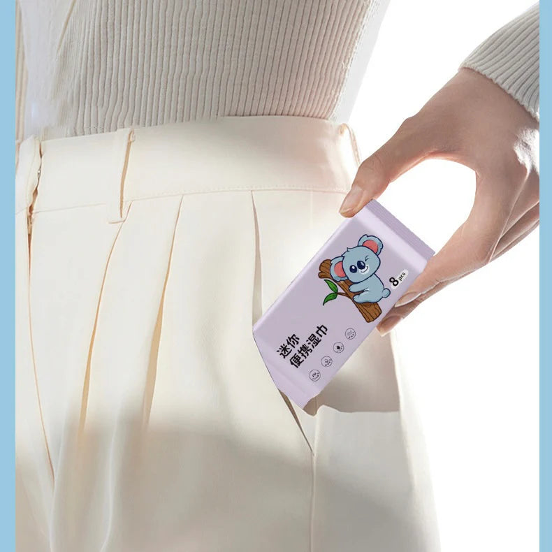 •Each mini pack is perfectly portable and filled with soft, gentle wipes that are ideal for quick clean-ups, sticky fingers, or refreshing moments anytime, anywhere.
