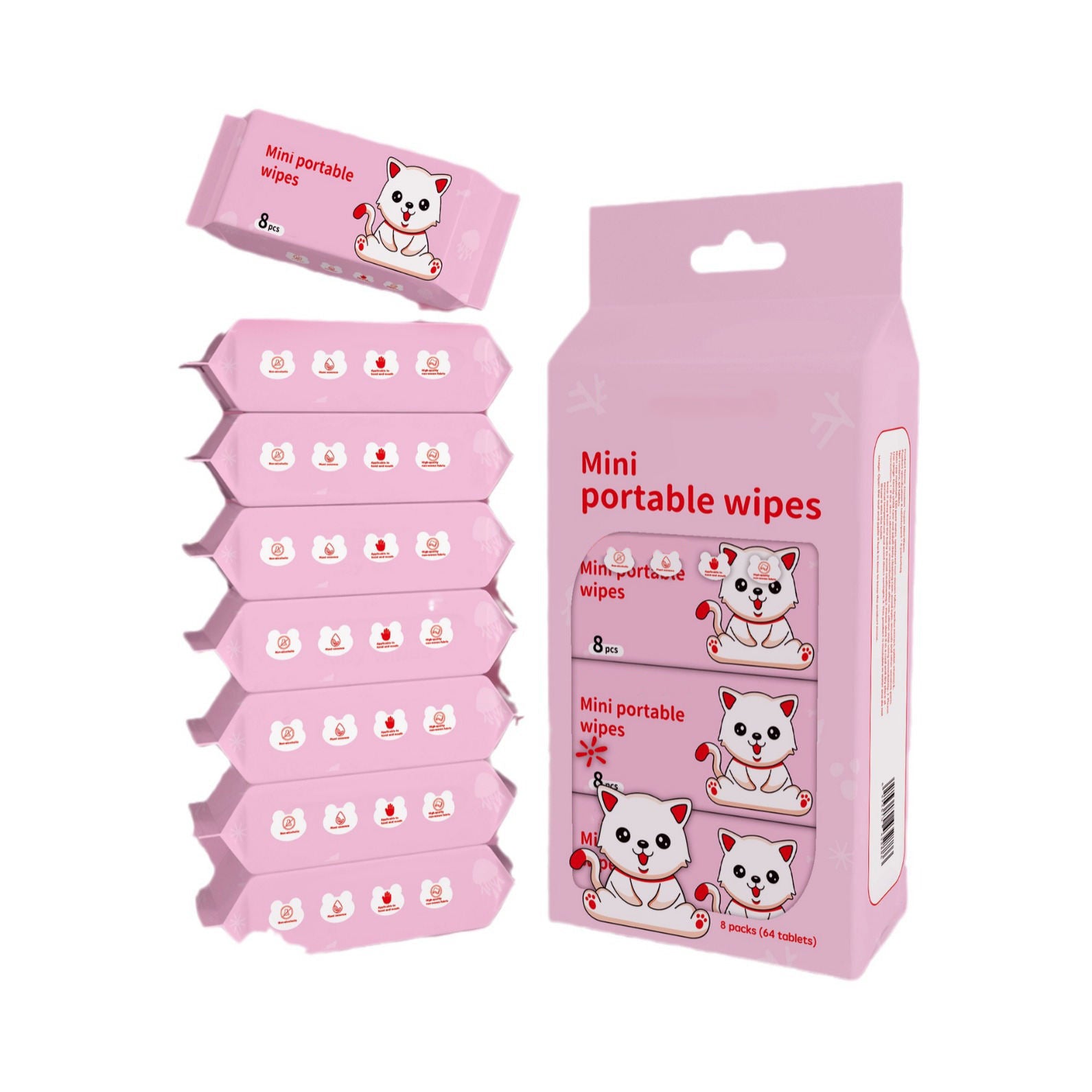 •Meet our adorable Mini Wet Wipes Multipack – 8 pocket-sized packs tucked inside one cute bundle!
